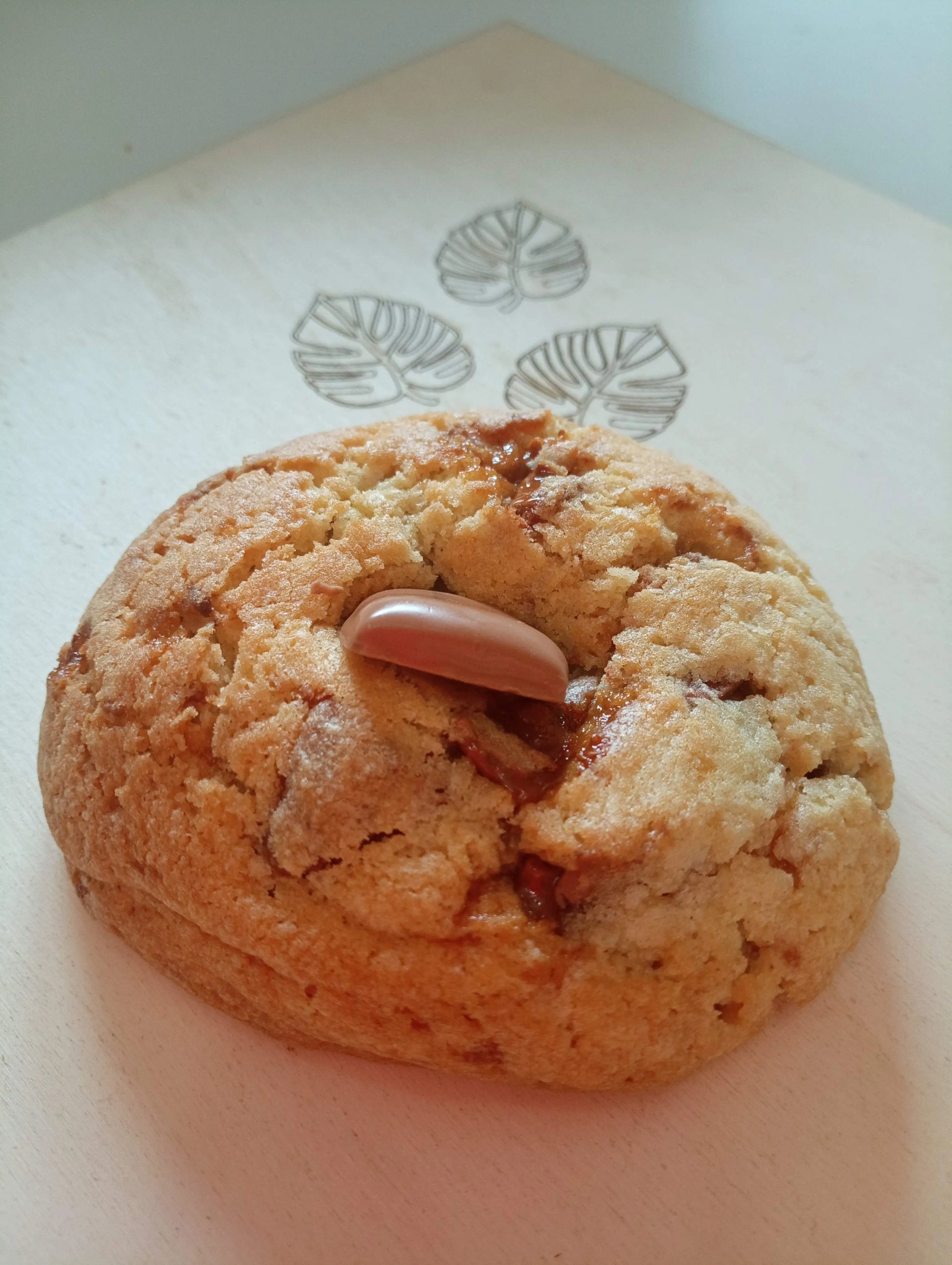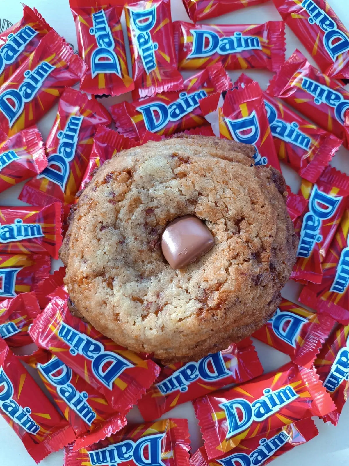 Un cœur tendre pour les amateurs de caramel : notre maxi cookie au Daim vous transporte au cœur du Périgord. Savourez le croquant du biscuit fait main mêlé au fondant des éclats de Daim.